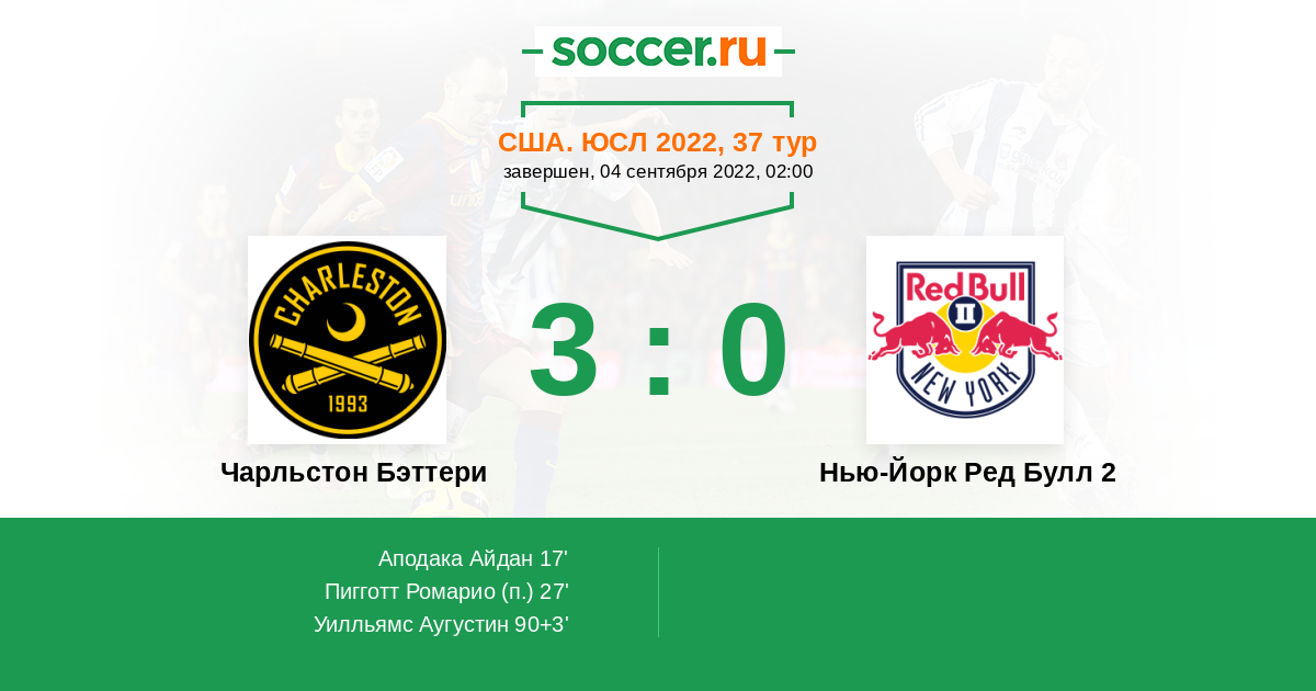 Протокол матча Чарльстон Бэттери против Нью-Йорк Ред Булл 2