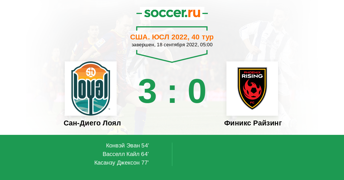 Протокол матча Сан-Диего Лоял против Финикс Райзинг
