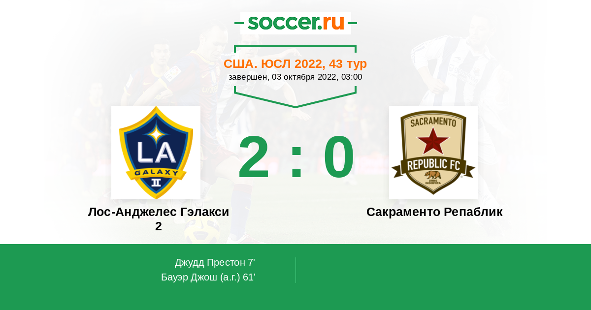 Протокол матча Лос-Анджелес Гэлакси 2 против Сакраменто Репаблик