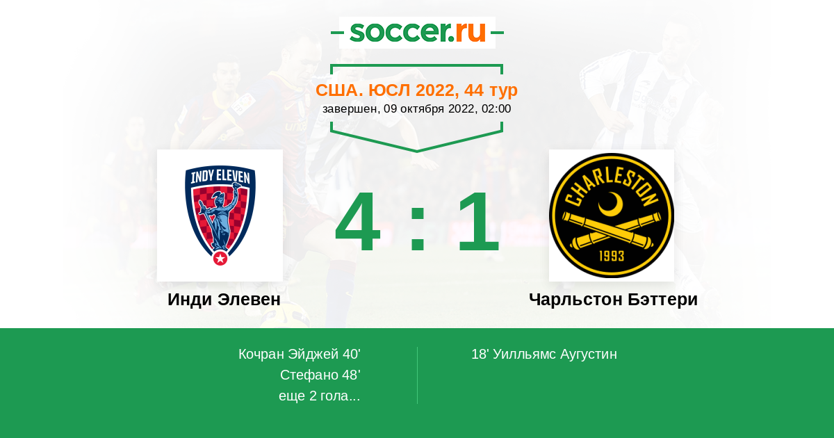 Протокол матча Инди Элевен против Чарльстон Бэттери
