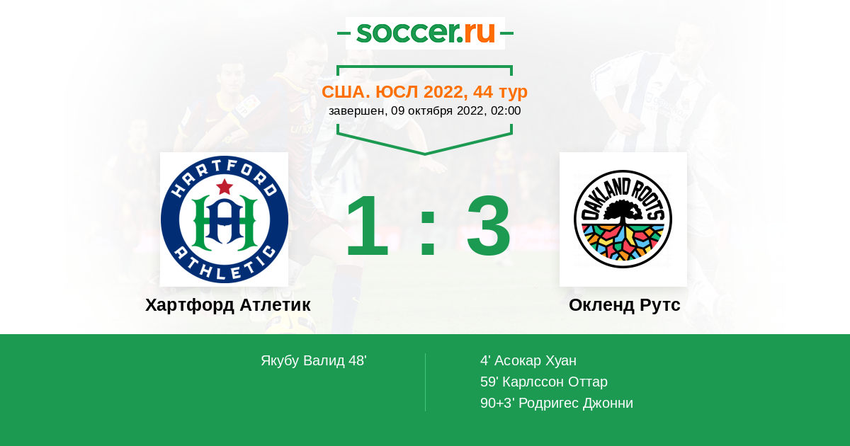 Протокол матча Хартфорд Атлетик против Окленд Рутс