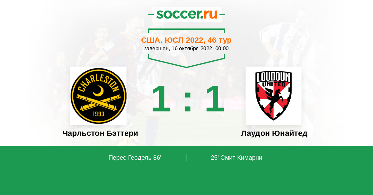 Протокол матча Чарльстон Бэттери против Лаудон Юнайтед
