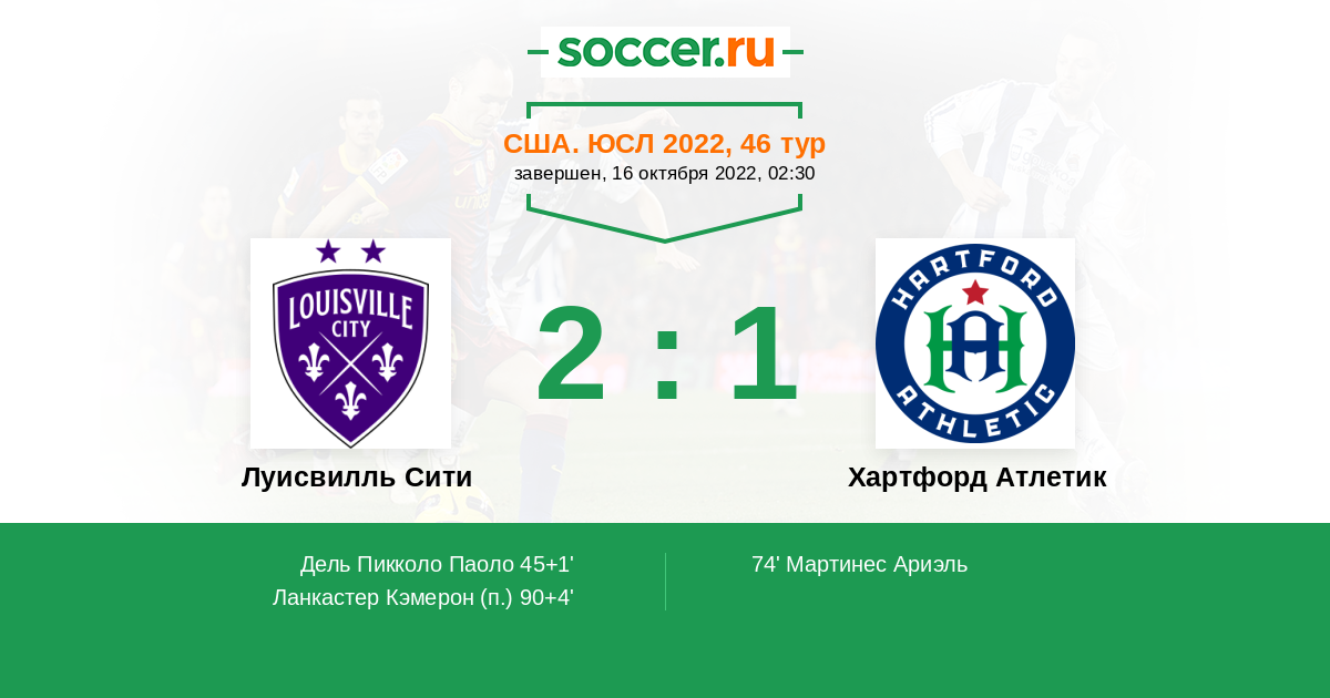 Протокол матча Луисвилль Сити против Хартфорд Атлетик