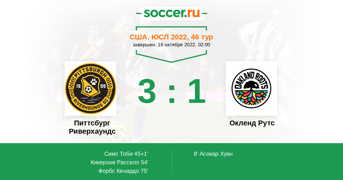 Протокол матча Питтсбург Риверхаундс против Окленд Рутс