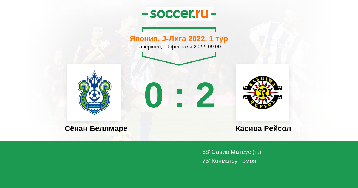 Протокол матча Сёнан Беллмаре против Касива Рейсол