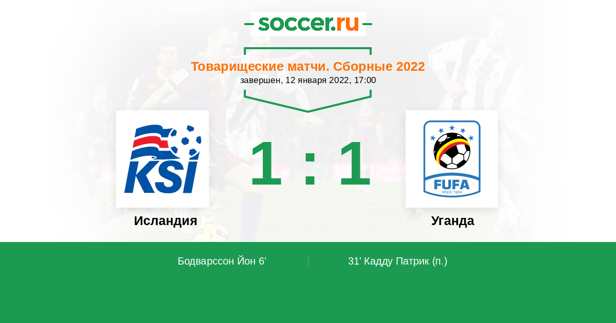 6' (1:0) Бодварссон Йон (22) (Йонссон Видар Ари (19))