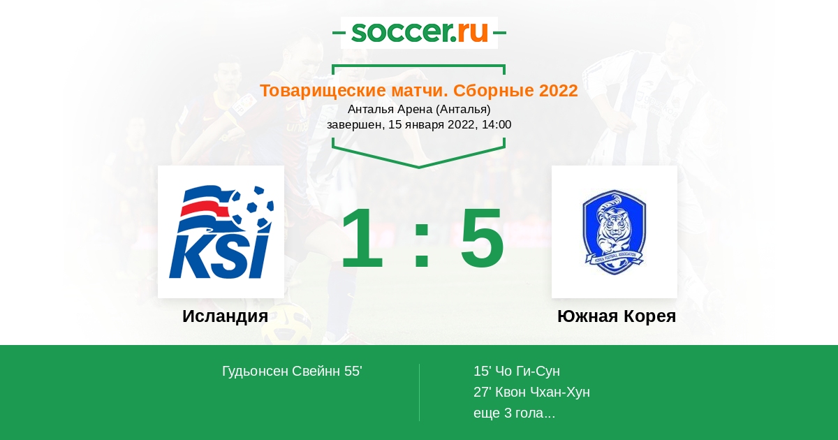 Протокол матча Исландия против Южная Корея