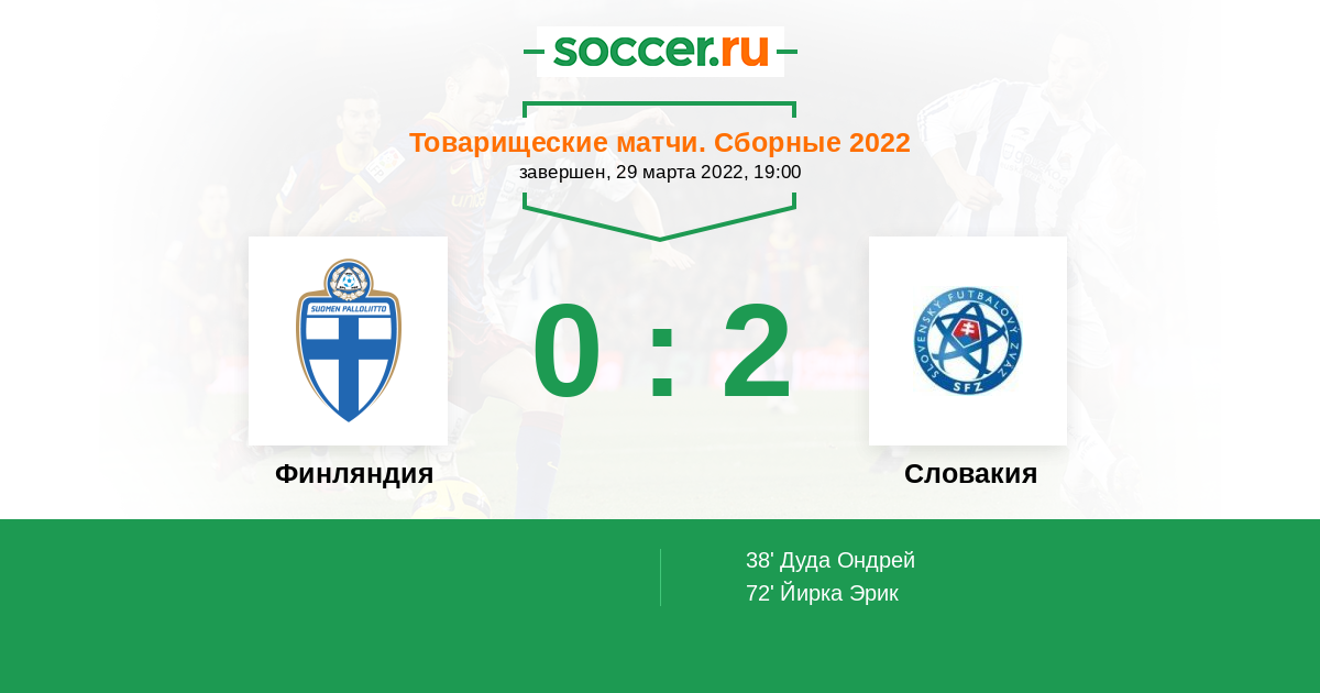 Протокол матча Финляндия против Словакия