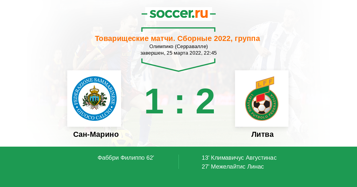 Протокол матча Сан-Марино против Литва
