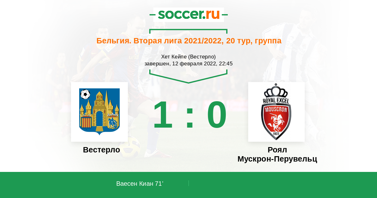 Протокол матча Вестерло против Роял Мускрон-Перувельц