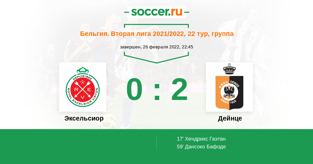 Протокол матча Эксельсиор против Дейнце