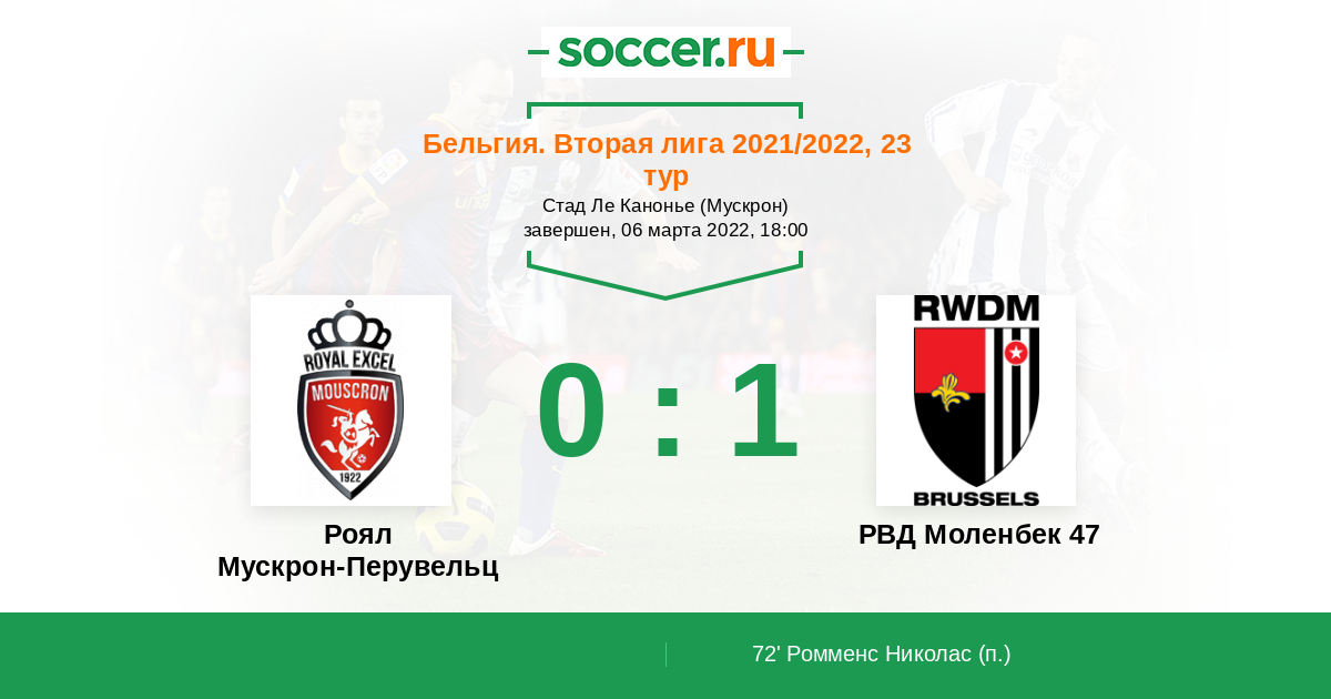 Протокол матча Роял Мускрон-Перувельц против РВД Моленбек 47