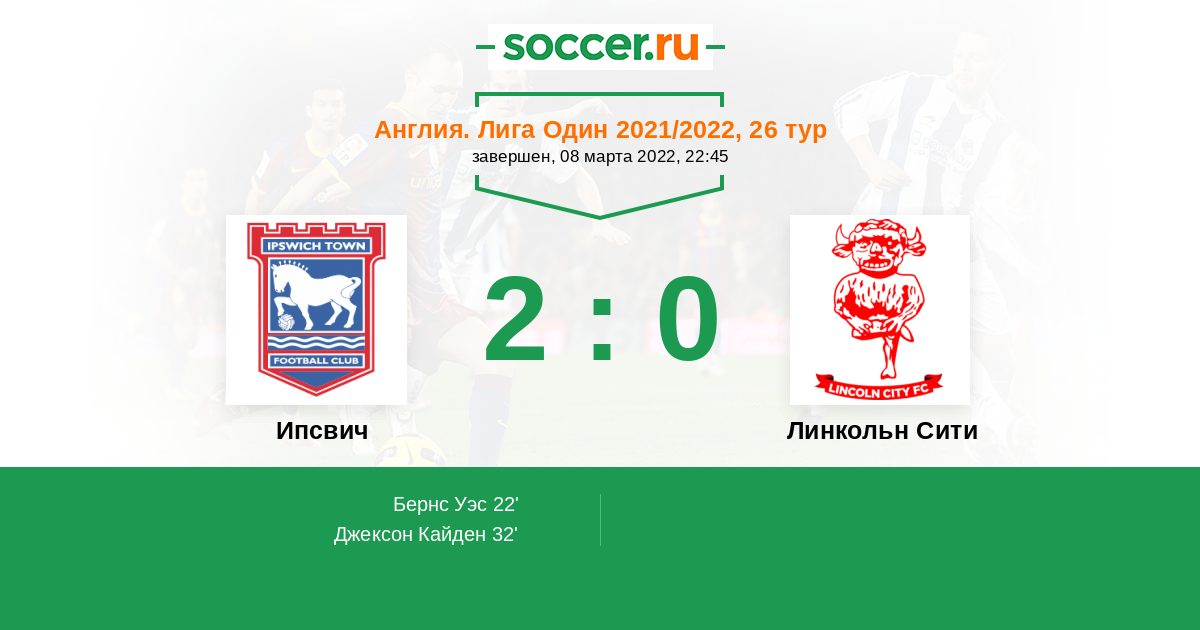 Протокол матча Ипсвич против Линкольн Сити