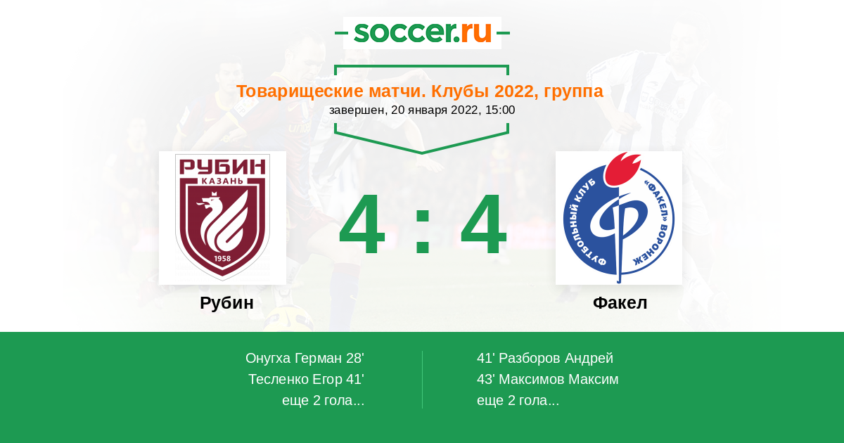 Протокол матча Рубин против Факел