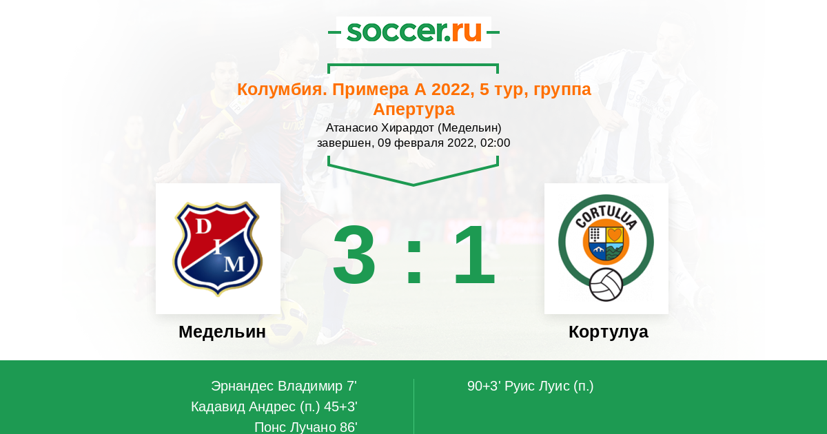 Протокол матча Медельин против Кортулуа