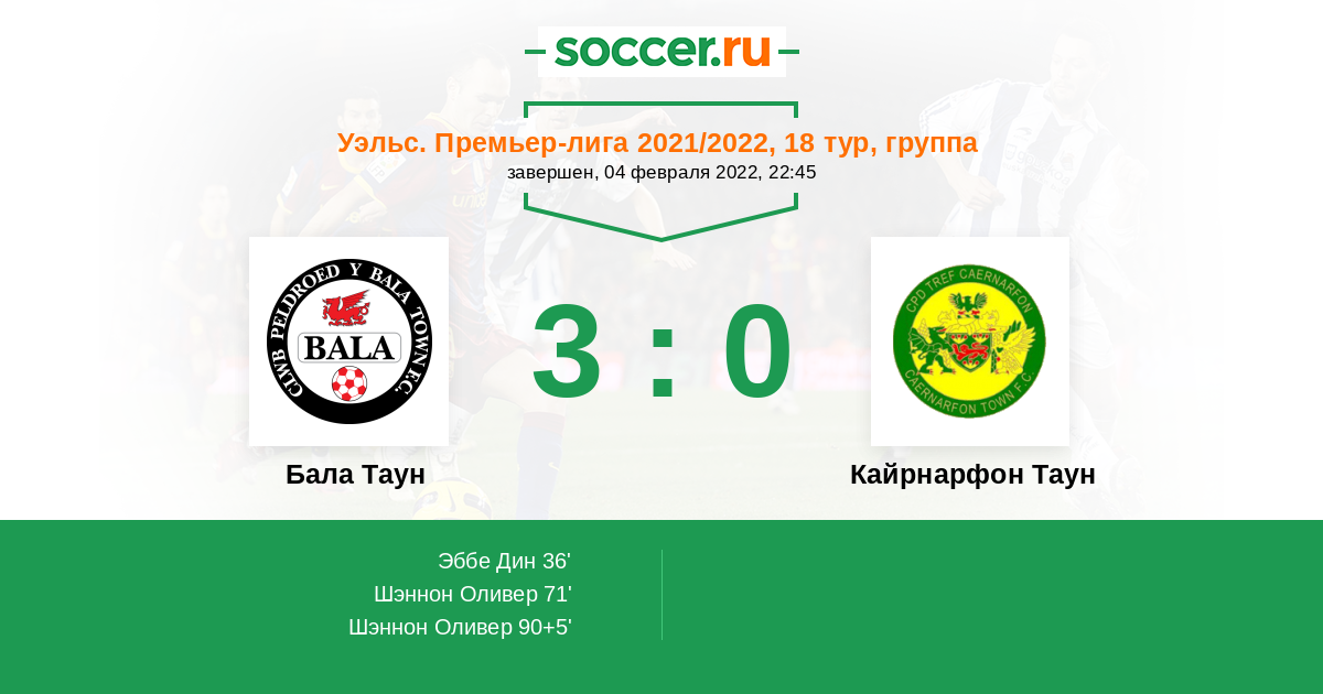 Протокол матча Бала Таун против Кайрнарфон Таун