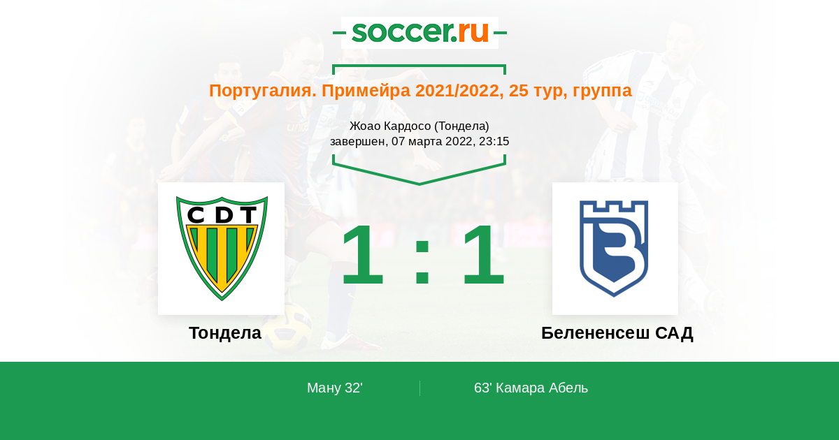 Протокол матча Тондела против Белененсеш САД