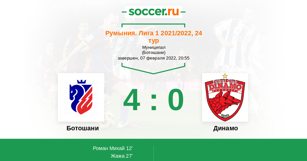 Протокол матча Ботошани против Динамо