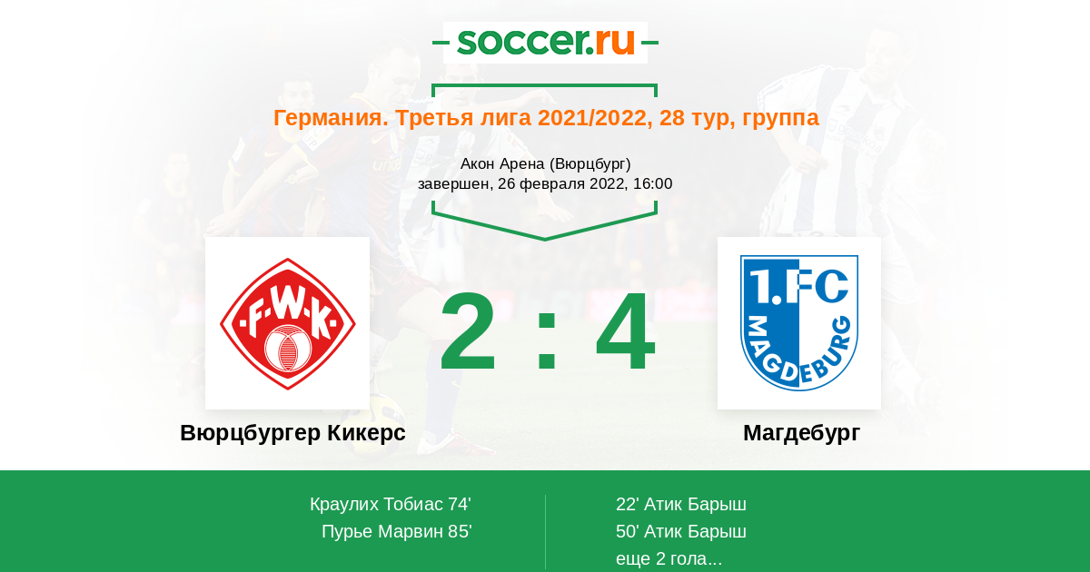 Протокол матча Вюрцбургер Кикерс против Магдебург