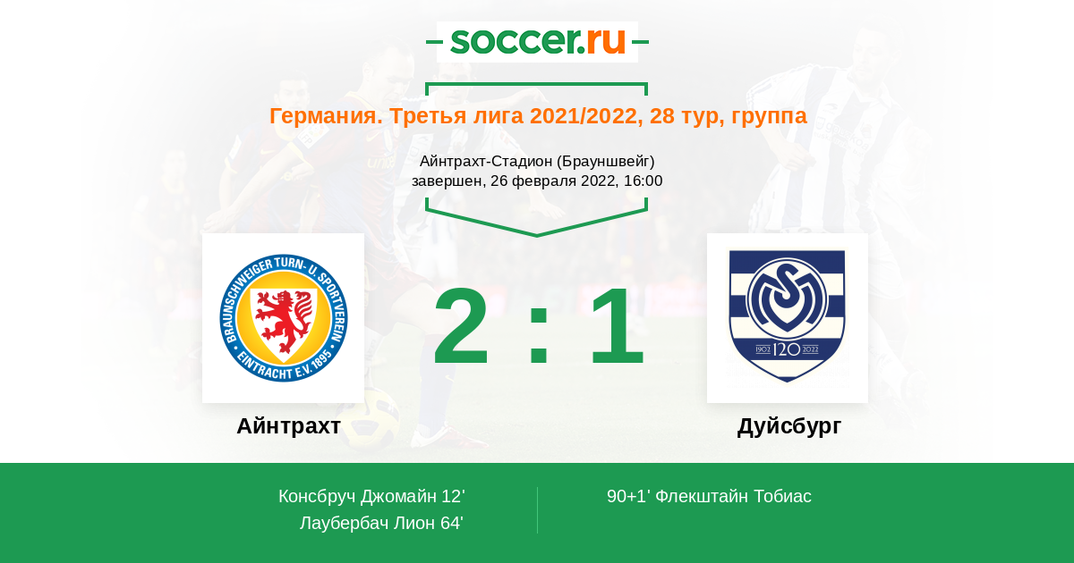 Протокол матча Айнтрахт против Дуйсбург