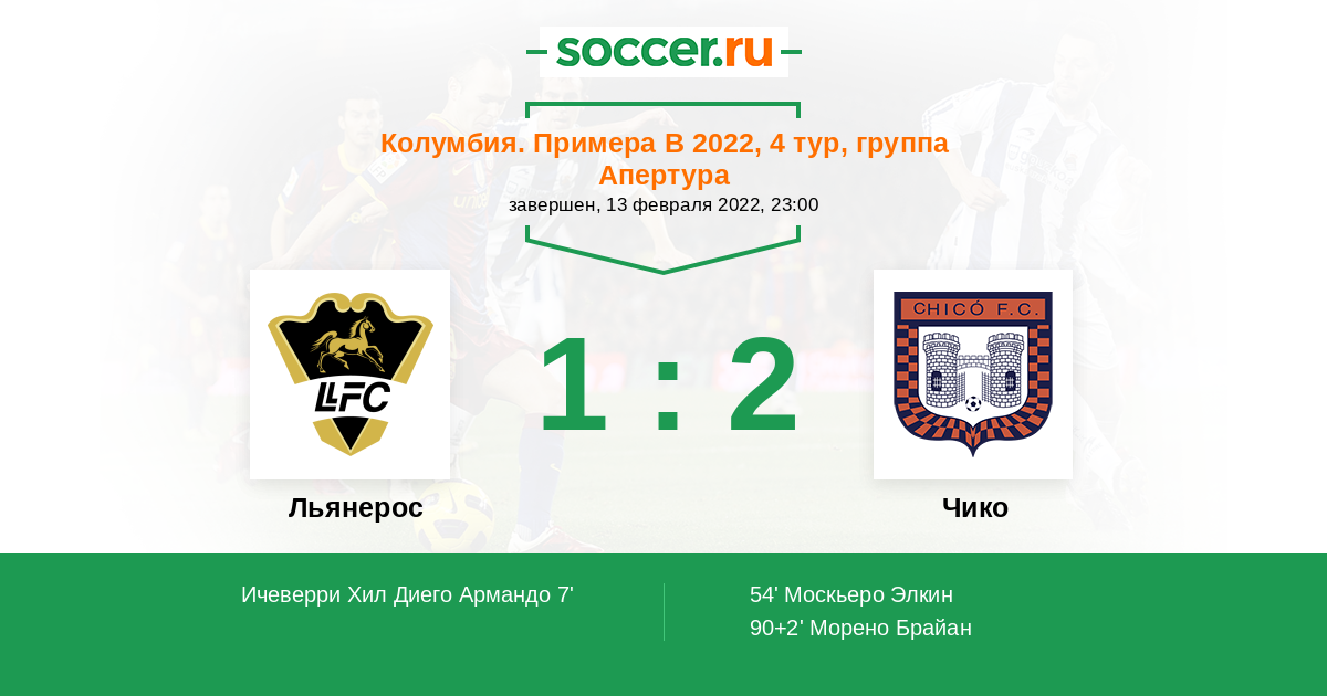 Протокол матча Льянерос против Чико