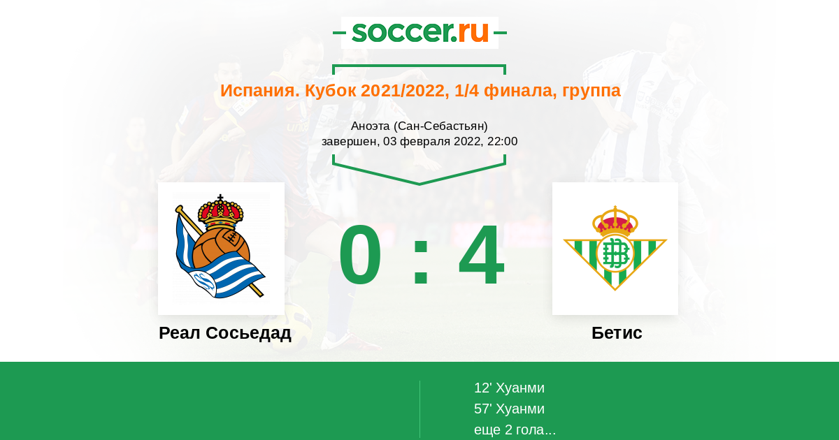 Шансы равны. Хотя «Реал Сосьедад» играет дома, у хозяев будет небольшое преимущество.
