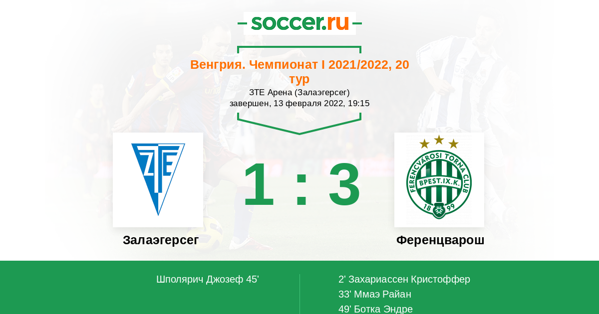 Протокол матча Залаэгерсег против Ференцварош