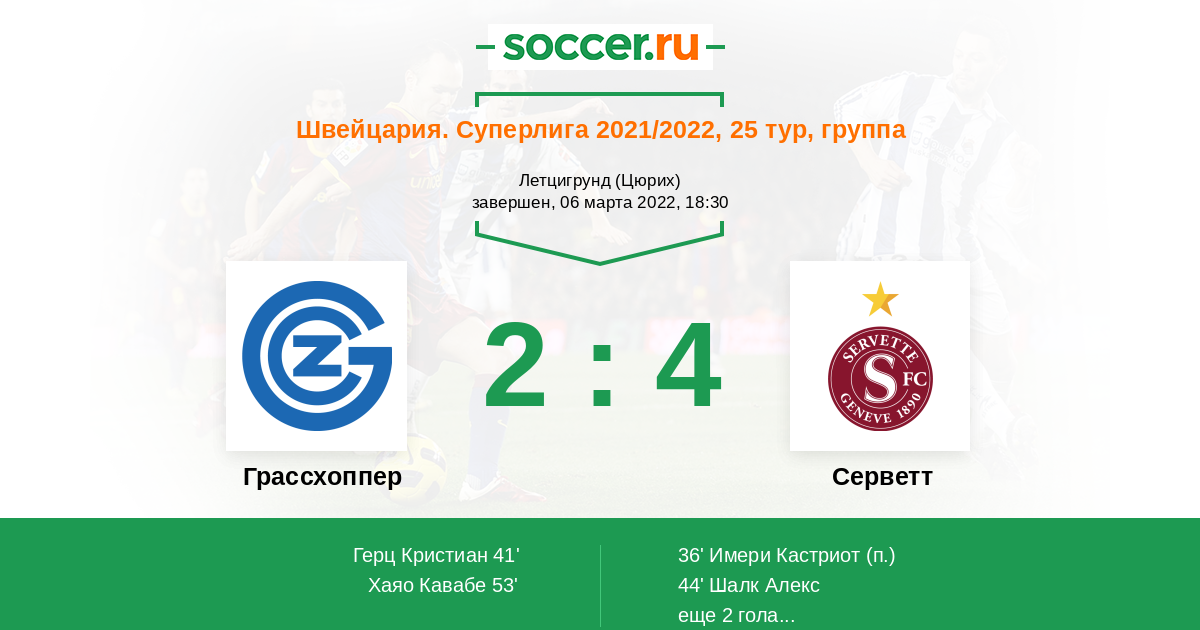 Протокол матча Грассхоппер против Серветт