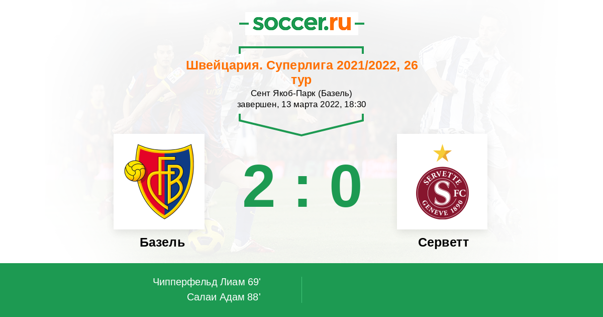 Протокол матча Базель против Серветт