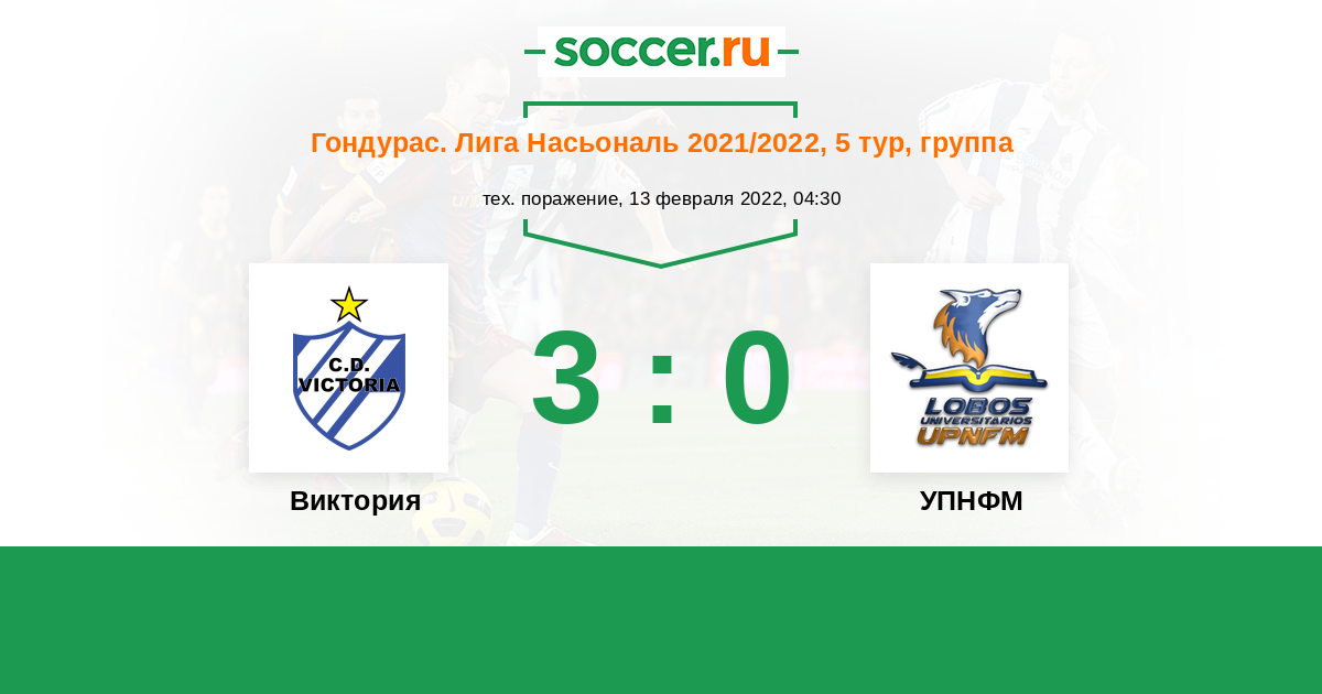 Гондурас. Лига Насьональ 07.04.2022 УПНФМ Логотип футбольный клуб УПНФМ (Тегусигальпа) 0:3 Логотип футбольный клуб Виктория (Ла-Сейба) Виктория