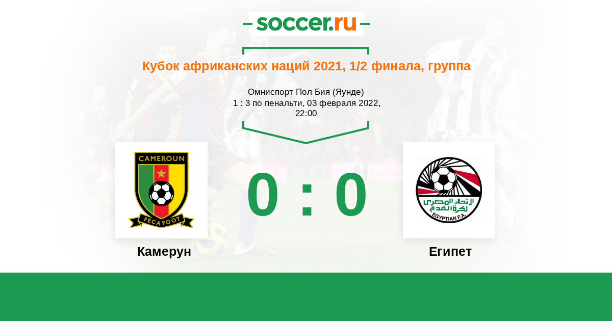 Сборная Египта может в очередной раз удивить, однако такой исход менее вероятен. Два вратаря получили травмы, придётся довериться третьему. Сетка в плей-офф была очень тяжёлая, сил оставлено много. Камерун же полон сил, он без труда одолел скромных оппонентов в плей-офф. Да и состав очень грозный. Думается, хозяева победят.