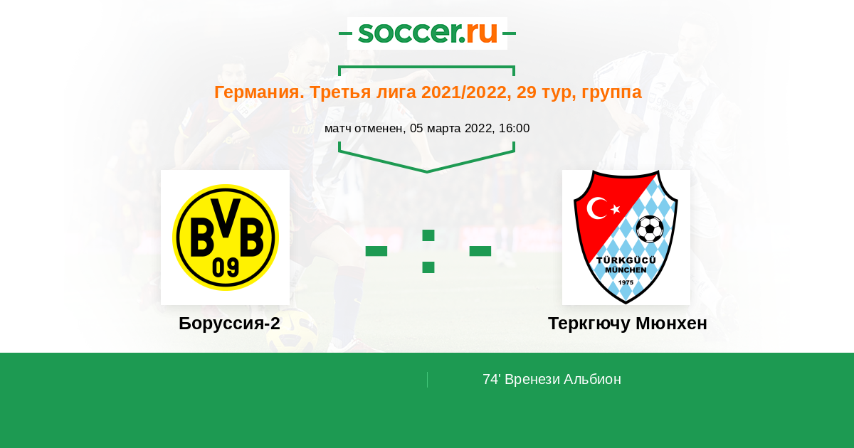 Расстановка матча Боруссия-2 против Теркгючу Мюнхен