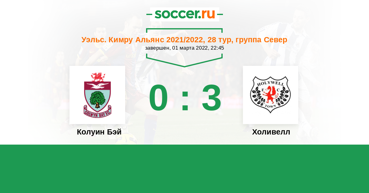 История матча Колуин Бэй против Холивелл