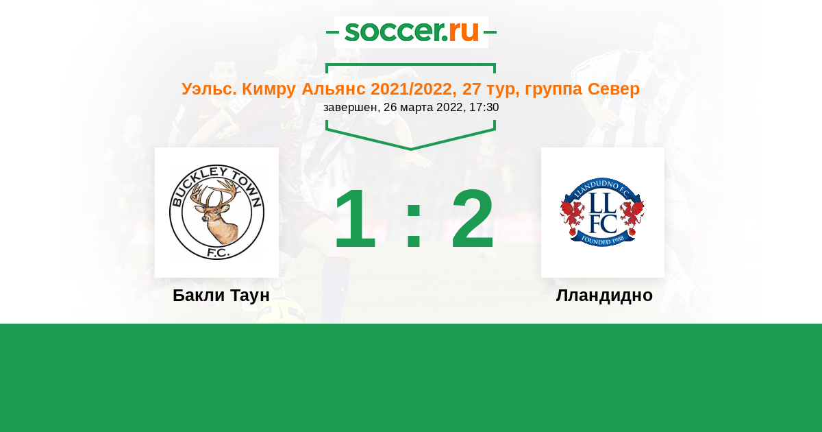 История матча Бакли Таун против Лландудно