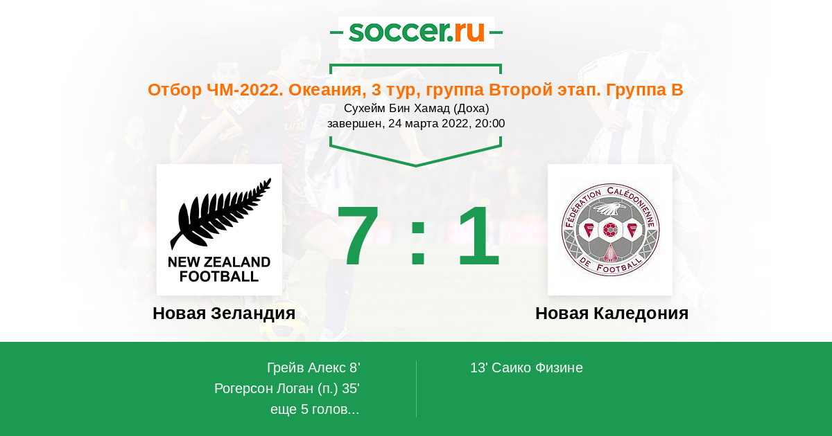 Протокол матча Новая Зеландия против Новая Каледония