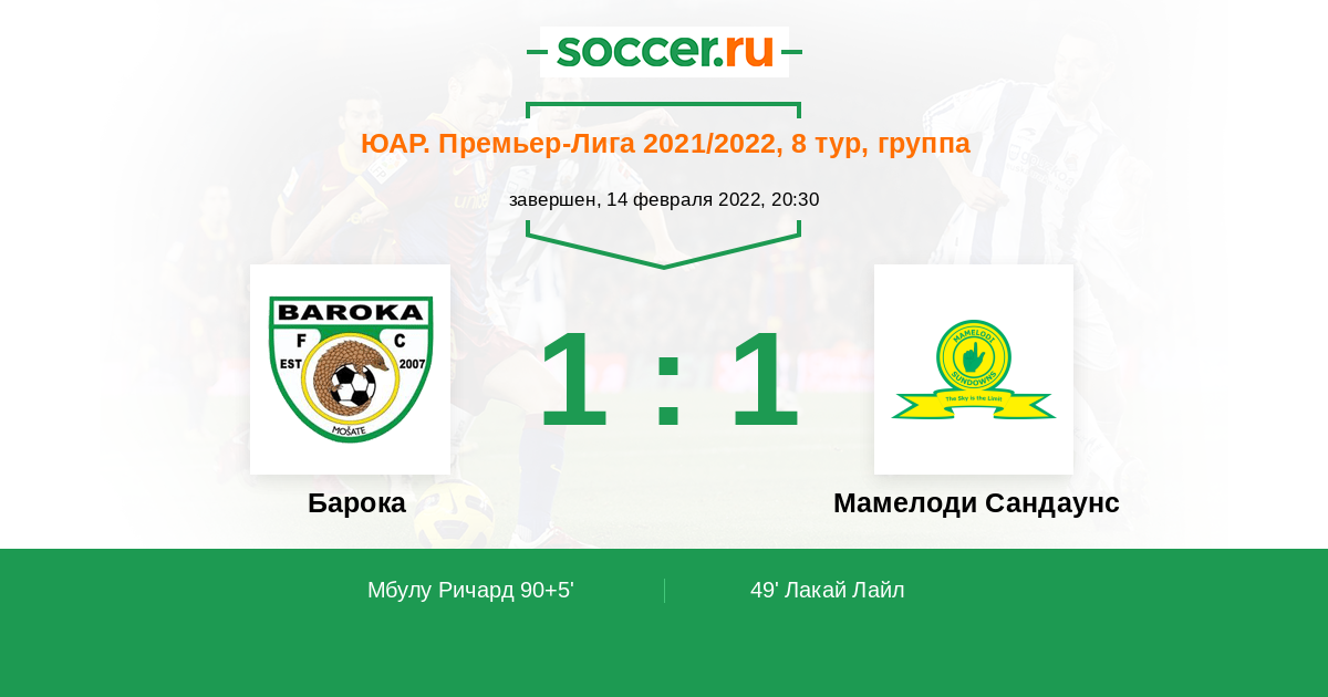 Протокол матча Барока против Мамелоди Сандаунс