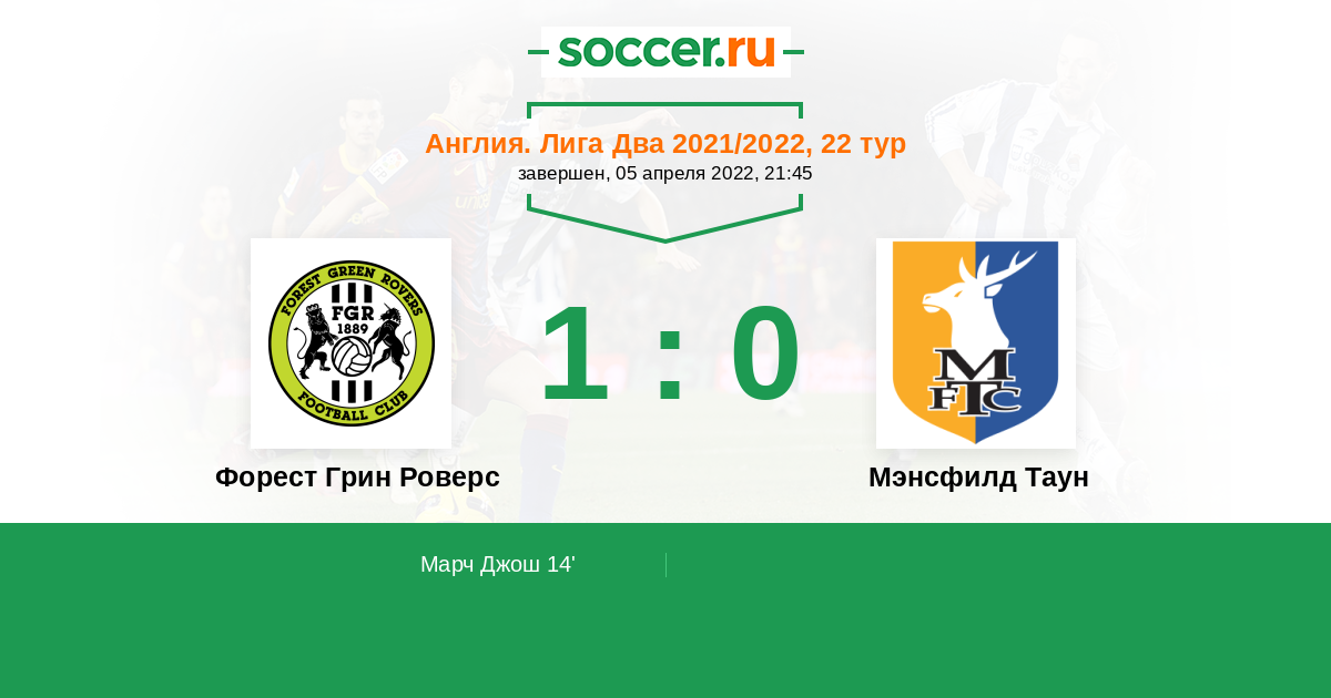 Протокол матча Форест Грин Роверс против Мэнсфилд Таун