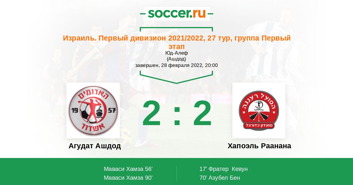 Протокол матча Агудат Ашдод против Хапоэль Раанана