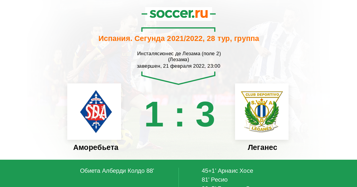 Протокол матча Аморебьета против Леганес