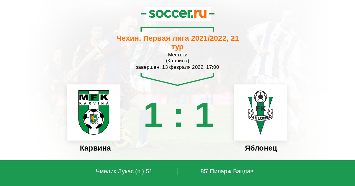 85' (1:1) Пиларж Вацлав (11) (Краточвил Милош (17))
