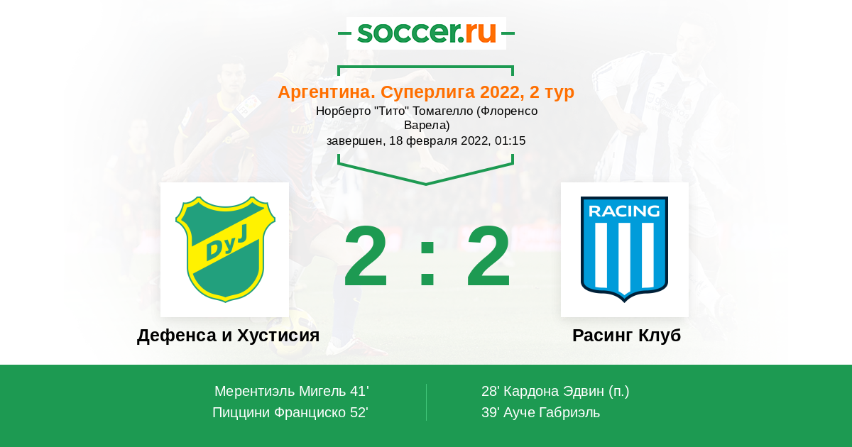 Протокол матча Дефенса и Хустисия против Расинг Клуб
