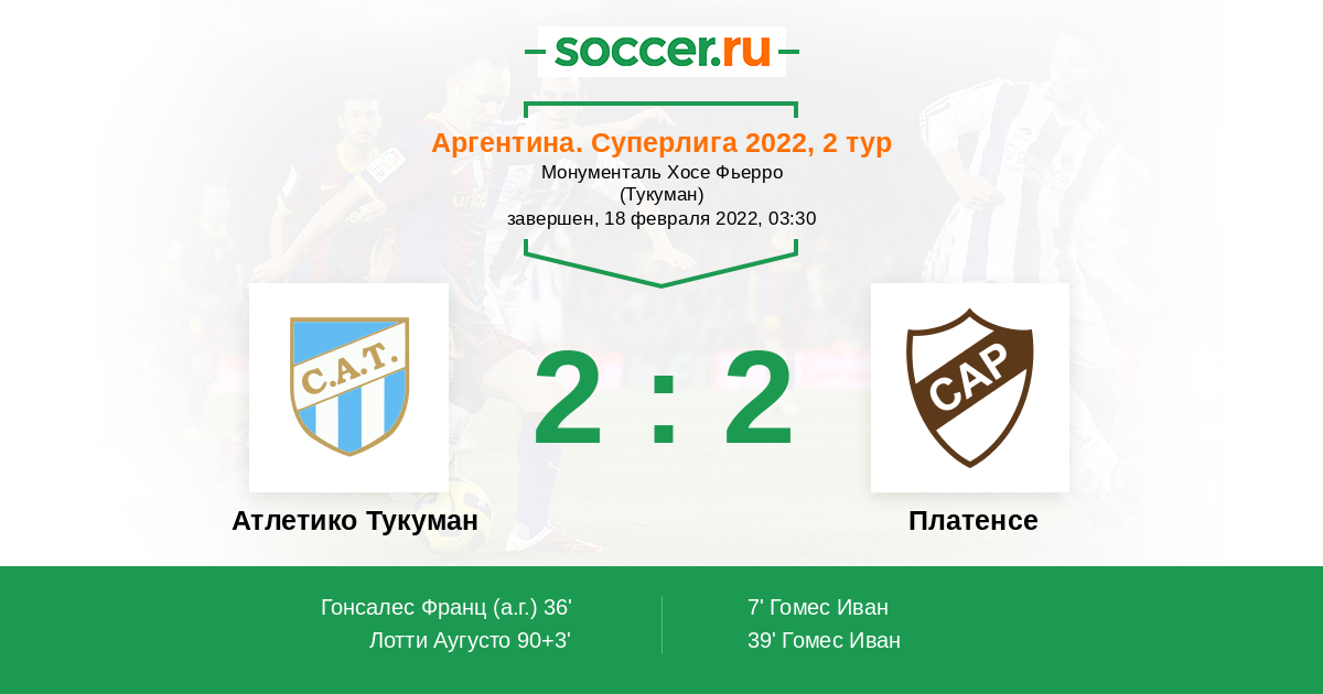 Протокол матча Атлетико Тукуман против Платенсе