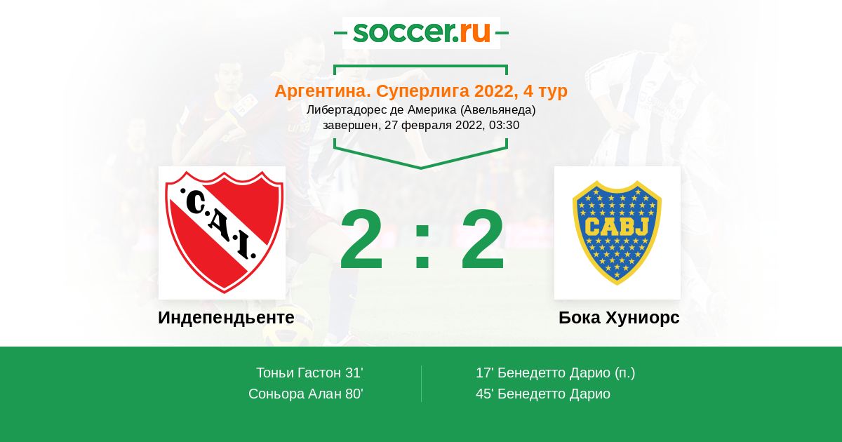 Протокол матча Индепендьенте против Бока Хуниорс