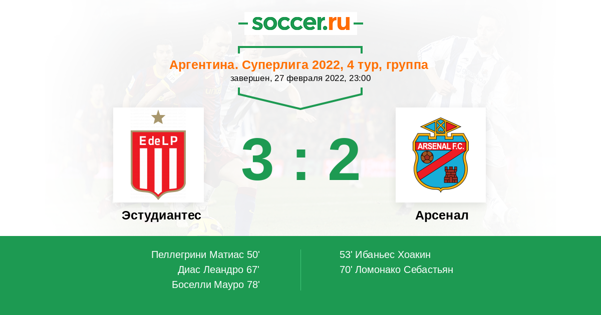 Протокол матча Эстудиантес против Арсенал