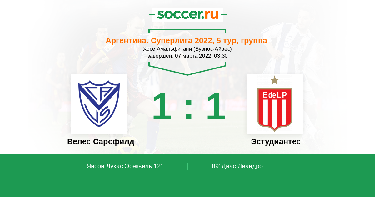 Протокол матча Велес Сарсфилд против Эстудиантес
