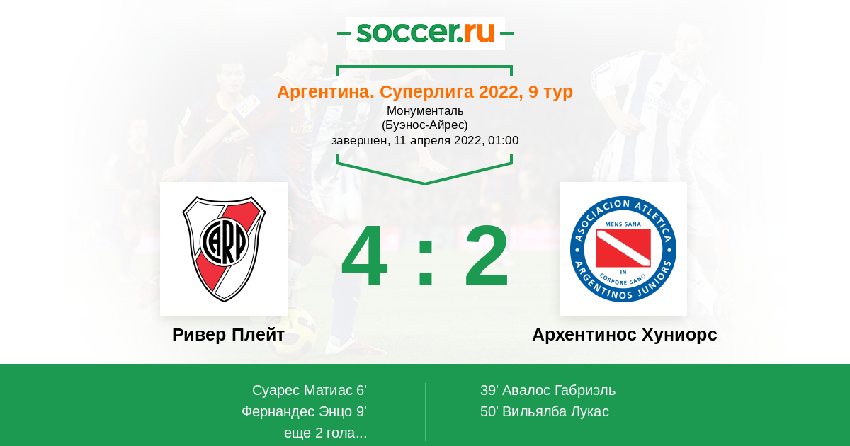 Протокол матча Ривер Плейт против Архентинос Хуниорс