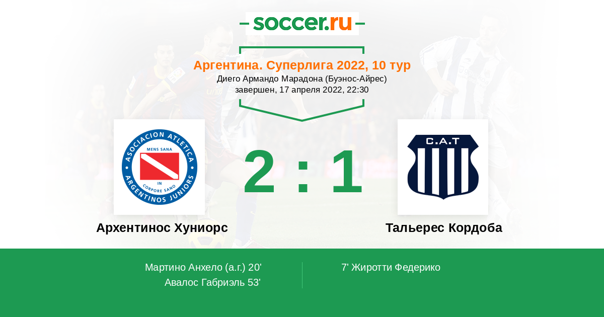 Протокол матча Архентинос Хуниорс против Тальерес Кордоба