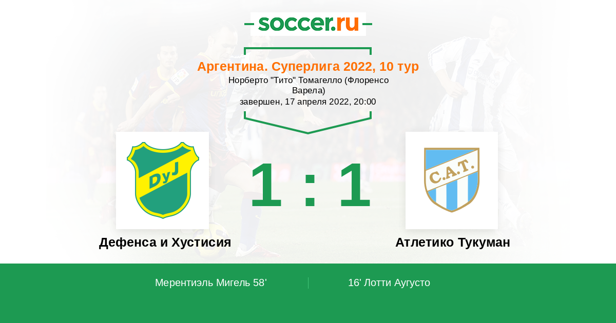 Протокол матча Дефенса и Хустисия против Атлетико Тукуман