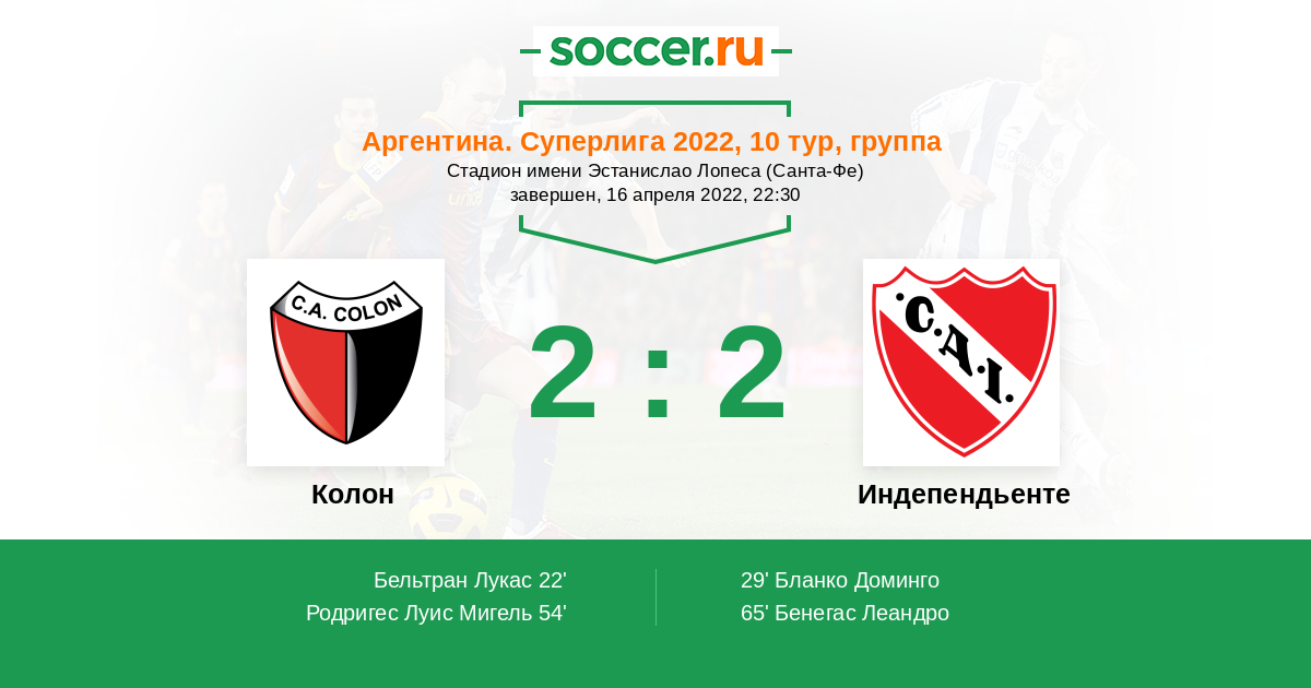 65' (2:2) Бенегас Леандро (18) (Ласо Хоакин (2))