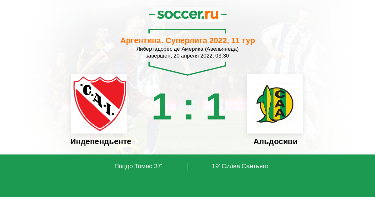 Протокол матча Индепендьенте против Альдосиви